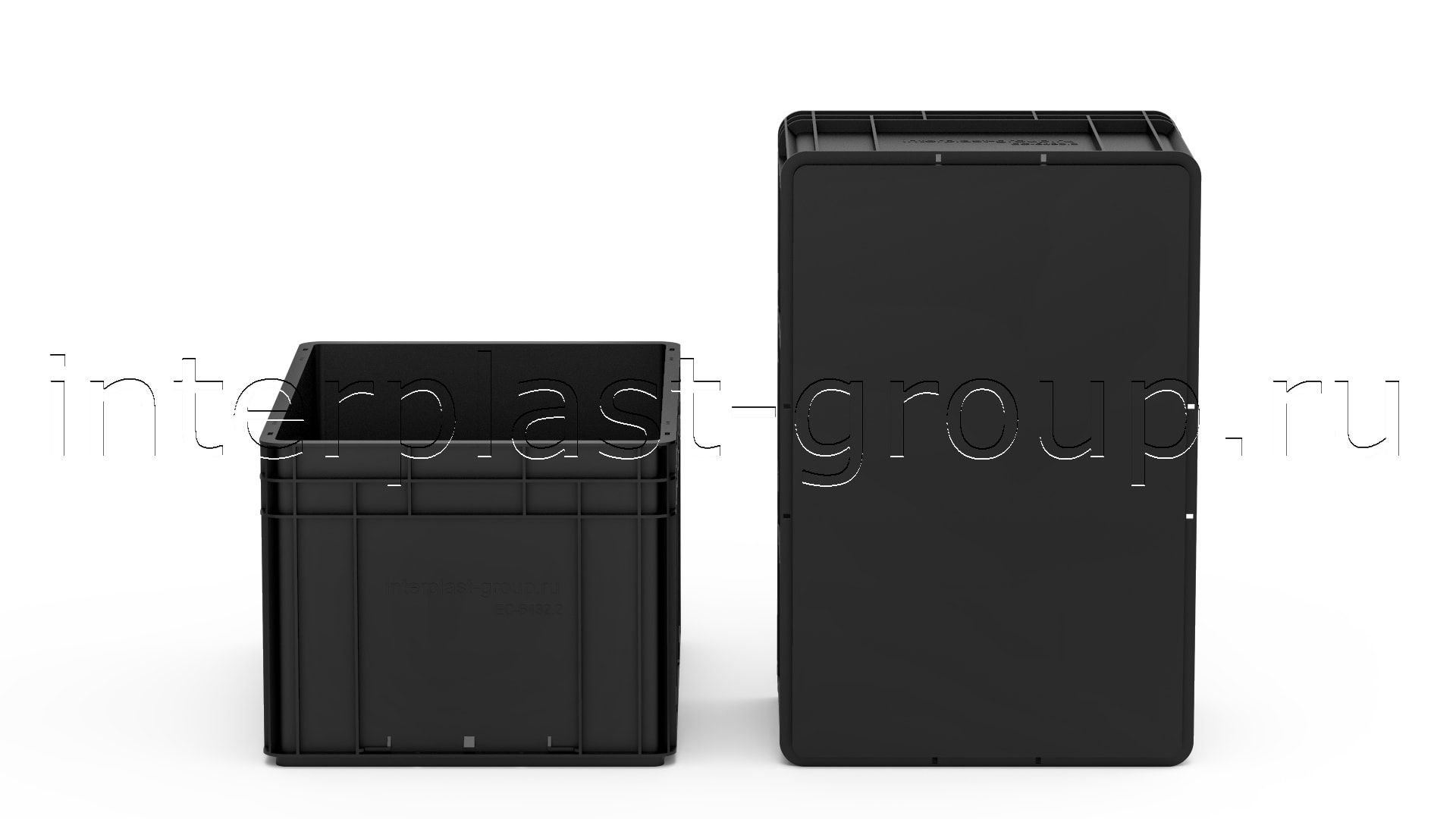 Евроконтейнер закрытые ручки/сплошное дно (черный), 600x400x320 мм
