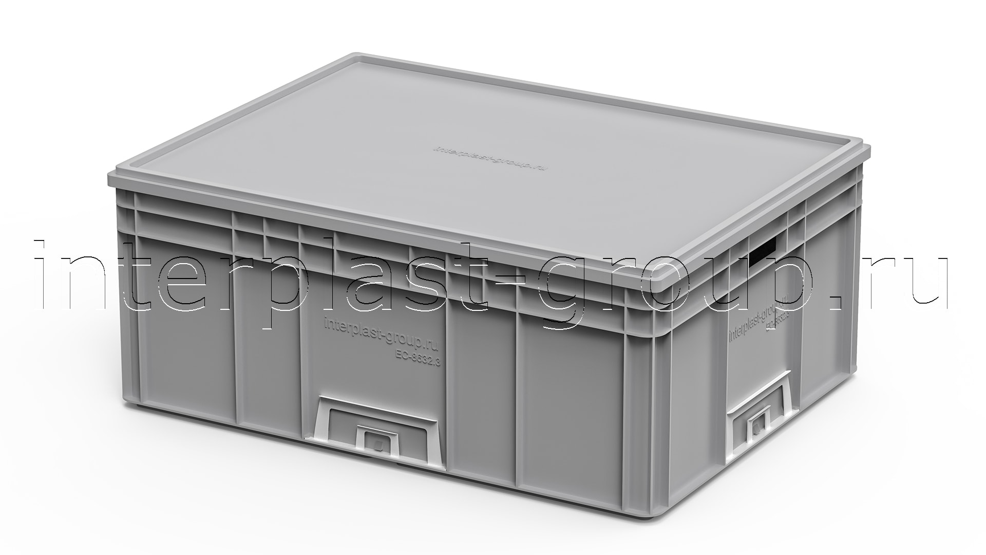 Евроконтейнер открытые ручки/усиленное дно (серый), 800x600x320 мм