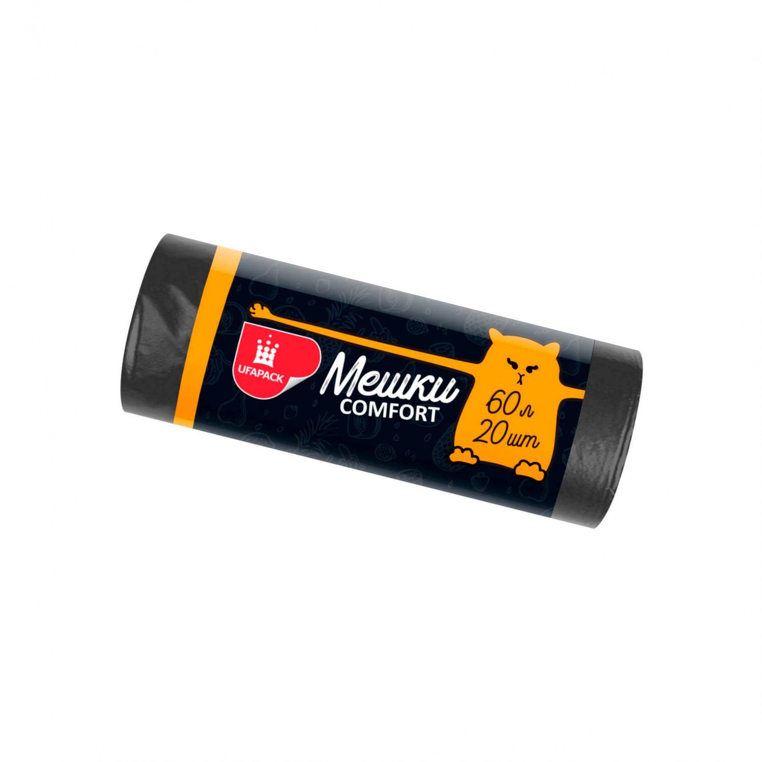 Мешки для мусора 60 л, черные, в рулоне 20 шт., ПНД, 9 мкм, 700х600 мм, Comfort, М0314 (МН 60-20ч) в Улан-Удэ