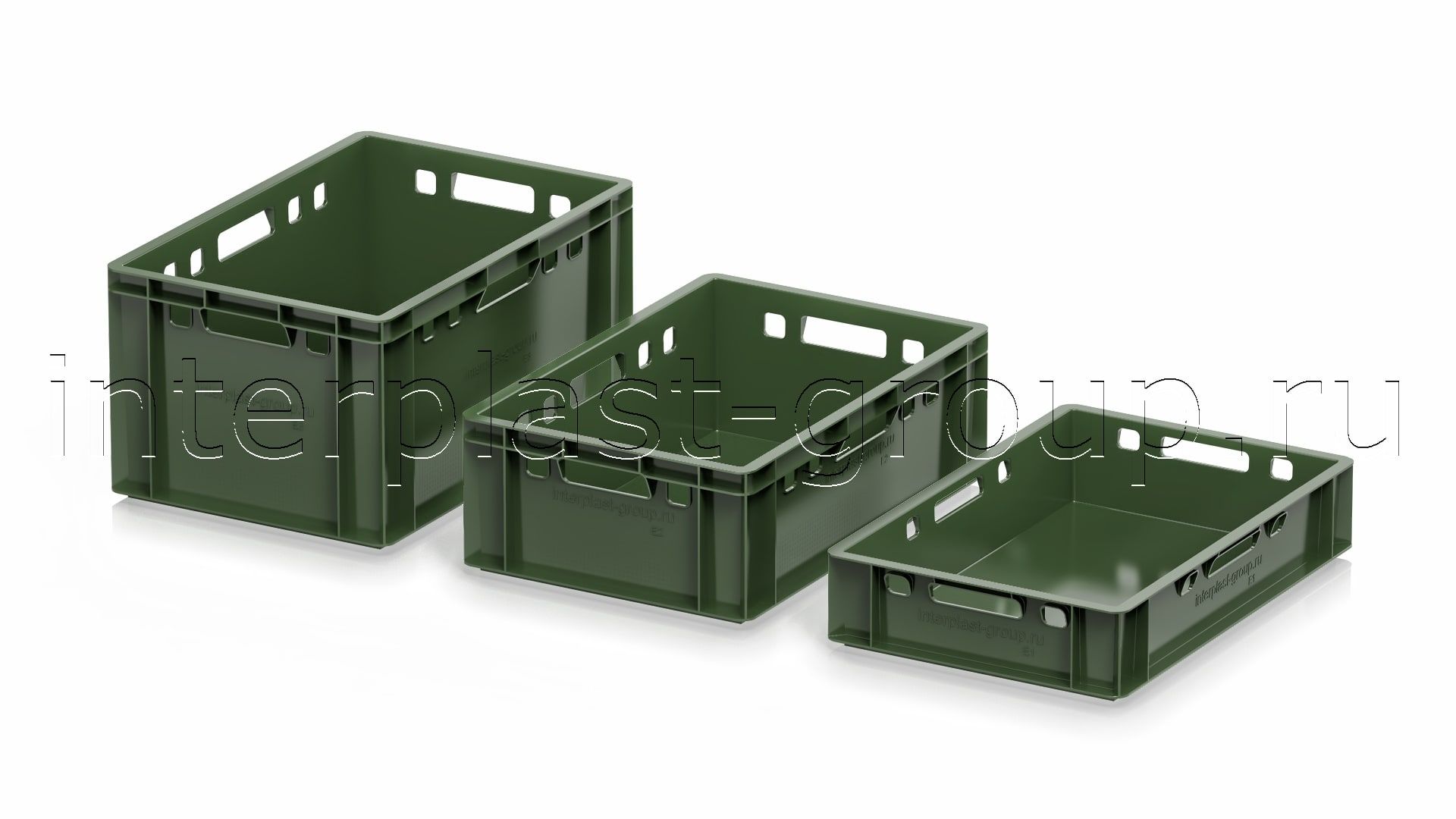 Зелёный ящик серии Е-1 востребован как ящик для хранения и контейнер для хранения в холодильных и морозильных камерах, а также как ящик для склада и удобный складской ящик при комплектации заказов. Он подходит и в роли ящика для транспортировки при внутрипроизводственных перемещениях.