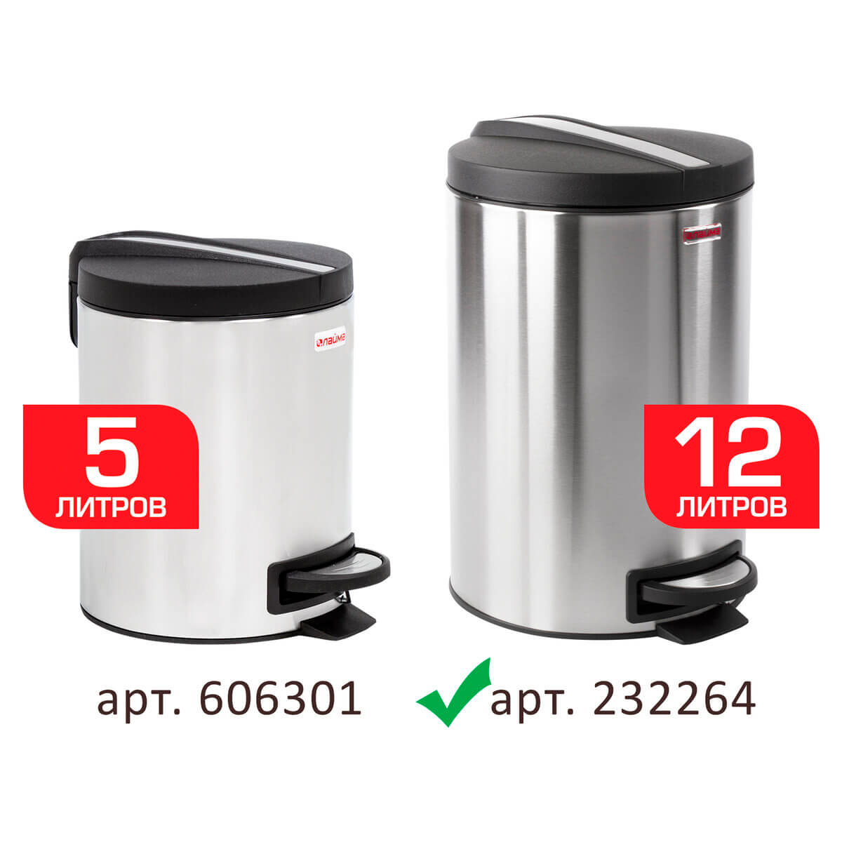 С вместимостью 12 литров, это ведро идеально подходит для помещений с средней проходимостью. Педаль облегчает открывание крышки, а плотное прилегание её к корпусу надежно удерживает запахи. Внутренний пластиковый контейнер снабжен удобной ручкой для легкого извлечения.