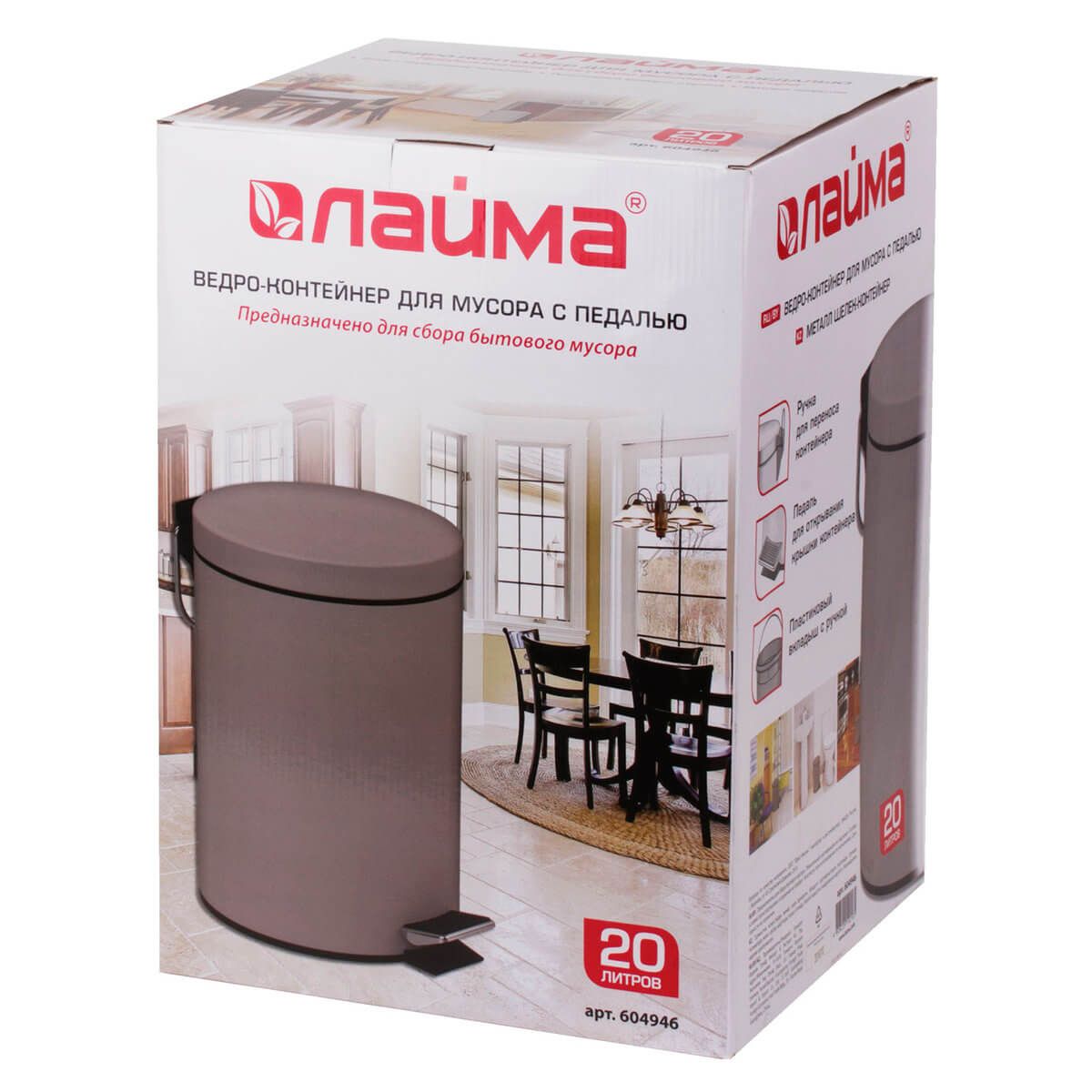 С вместительными 20 литрами, оно прекрасно справляется с повышенной проходимостью. Удобная педаль обеспечивает мгновенный доступ, а плотно прилегающая крышка надежно удерживает неприятные запахи внутри.