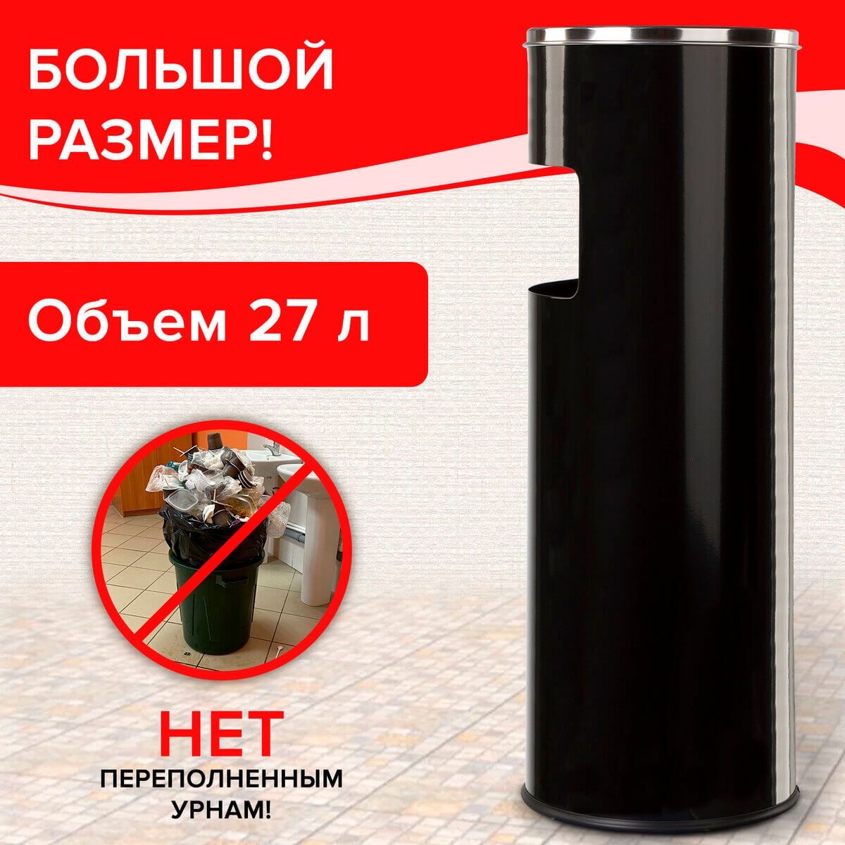 Урна с пепельницей 27 л, нержавеющая сталь, черная, LAIMA PROFESSIONAL